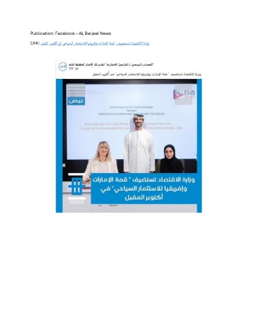 Publication: Facebook – AL Barjeel News Link: لبقلما ربوتكأ يف "يحايسلا رامثتسلال ايقيرفإو تاراملإا ةمق " فيضتست داصتقلاا ةرازو