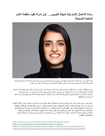 مملأا ةمظنم دوقت ةأرما لوأ …سيونلا ةخيش ةيتاراملإا لامعلأا ةدئار