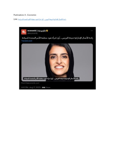 Publication: X - Economic Link: ةحايسلل ةدحتلما مملأا ةمظنم دوقت ةأرما لوأ …سيونلا ةخيش ةيتاراملإا لامعلأا ةدئار