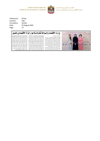 Publication: Al Fajr Country: UAE Circulation: 34,596 Date: 22 August 2025 Page: 13