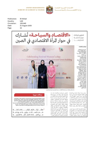 Publication: Al Etihad Country: UAE Circulation: 109,640 Date: 21 August 2025 Page: 16