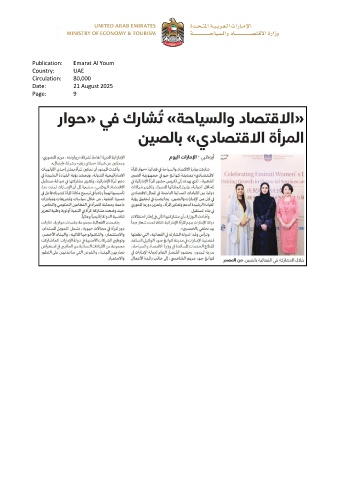 Publication: Emarat Al Youm Country: UAE Circulation: 80,000 Date: 21 August 2025 Page: 9