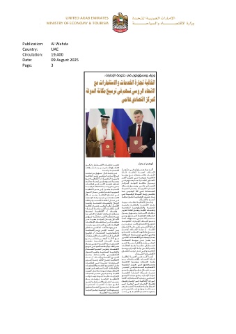 Publication: Al Wahda Country: UAE Circulation: 19,400 Date: 09 August 2025 Page: 3
