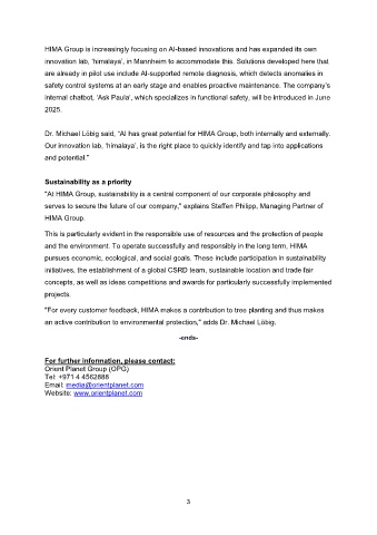 HIMA Group is increasingly focusing on AI-based innovations and has expanded its own