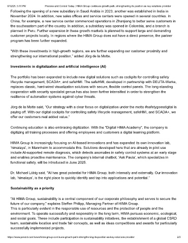6/12/25, 5:16 PM Process and Control Today | HIMA Group continues growth path, strengthening its position as key solutions provider
