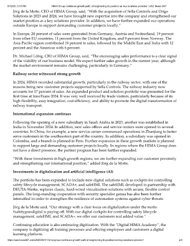 In 2024, HIMA recorded substantial growth, particularly in the railway sector, with one of the