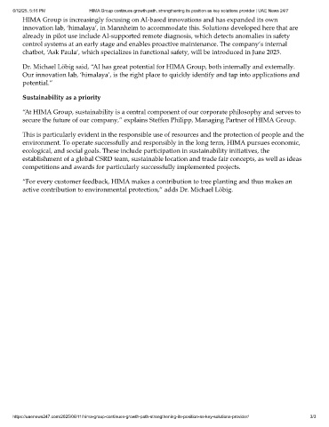 HIMA Group is increasingly focusing on AI-based innovations and has expanded its own
