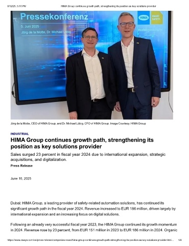 6/12/25, 5:16 PM HIMA Group continues growth path, strengthening its position as key solutions provider