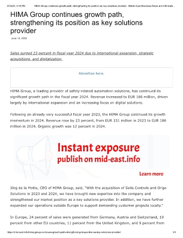 6/12/25, 5:18 PM HIMA Group continues growth path, strengthening its position as key solutions provider - Middle East Business News and Informati…