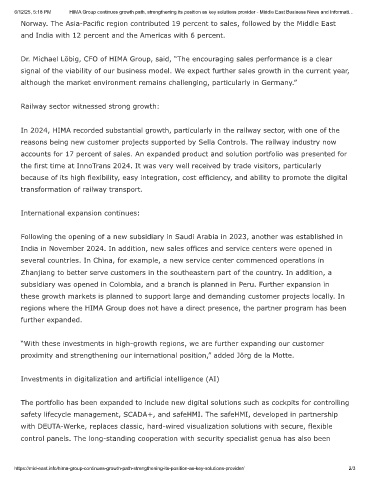 6/12/25, 5:18 PM HIMA Group continues growth path, strengthening its position as key solutions provider - Middle East Business News and Informati…