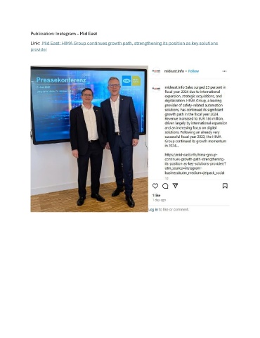 Publication: Instagram – Mid East Link: Mid East: HIMA Group continues growth path, strengthening its position as key solutions provider