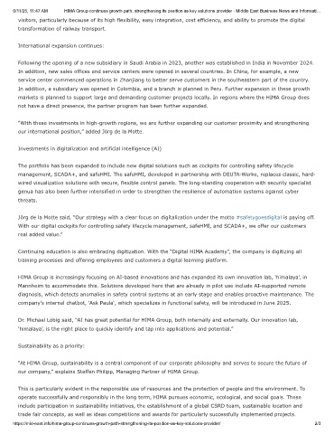 6/11/25, 11:47 AM  HIMA Group continues growth path, strengthening its position as key solutions provider - Middle East Business News and Informati…