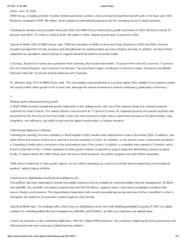 In 2024, HIMA recorded substantial growth, particularly in the railway sector, with one of the reasons being new customer projects