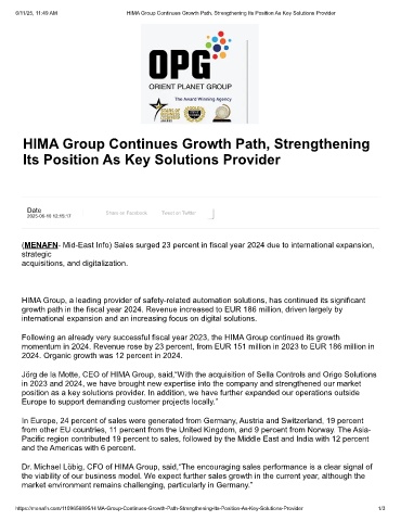6/11/25, 11:49 AM                 HIMA Group Continues Growth Path, Strengthening Its Position As Key Solutions Provider