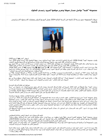 ﺚﯿﺣ ،2024 ﺔﯿﻟﺎﻤﻟا ﺔﻨﺴﻟا لﻼﺧ ظﻮﺤﻠﻤﻟا ﺎھﻮﻤﻧ رﺎﺴﻣ ،ﺔﻣﻼﺴﻟا ﺔﺘﻤﺗأ لﻮﻠﺣ ﻲﻓ ةﺪﺋاﺮﻟا ﺔﯿﻤﻟﺎﻌﻟا ﺔﻛﺮﺸﻟا ،(HIMA Group) "ﺎﻤﯿھ" ﺔﻋﻮﻤﺠﻣ ﺖﻠﺻاو