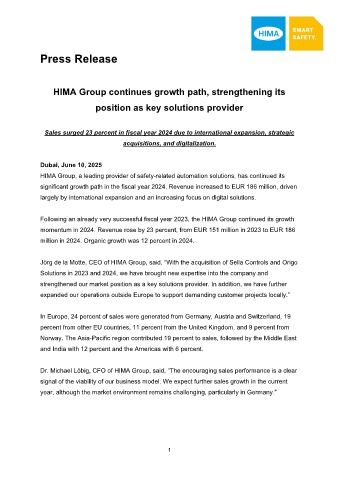 HIMA Group continues growth path, strengthening its