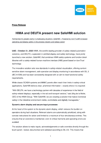 UAE – October 21, 2025 HIMA, the world's leading provider of safety-related automation