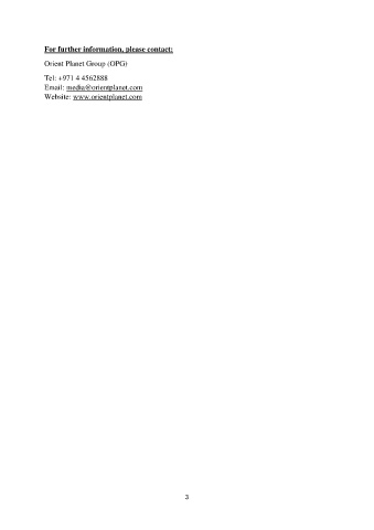 For further information, please contact: Orient Planet Group (OPG) Tel: +971 4 4562888 Email: media@orientplanet.com Website: www.orientplanet.com 3