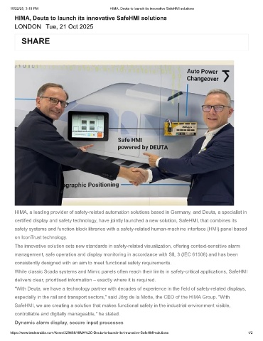10/22/25, 3:10 PM HIMA, Deuta to launch its innovative SafeHMI solutions