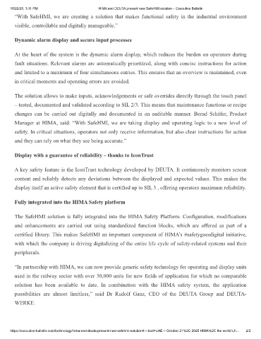 10/22/25, 3:11 PM HIMA and DEUTA present new SafeHMI solution – Executive Bulletin