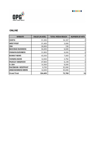WEBSITE VALUE (IN AED) TOTAL MEDIA REACH NUMBER OF HITS