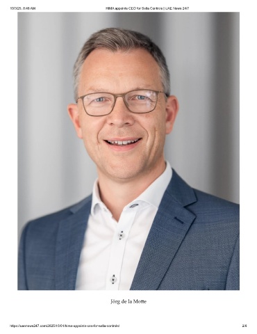 10/3/25, 8:48 AM HIMA appoints CEO for Sella Controls | UAE News 24/7 Jörg de la Motte https://uaenews247.com/2025/10/01/hima-appoints-ceo-for-sella-controls/ 2/6