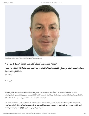 10/2/25, 10:47 AM "زﻟورﺗﻧوﻛ ﻼﯾﺳ" ﺔﻌﺑﺎﺗﻟا ﺎﮭﺗﻛرﺷﻟ ً ﺎﯾذﯾﻔﻧﺗ ً ﺎﺳﯾﺋر نﯾﻌﺗ "ﺎﻣﯾھ"