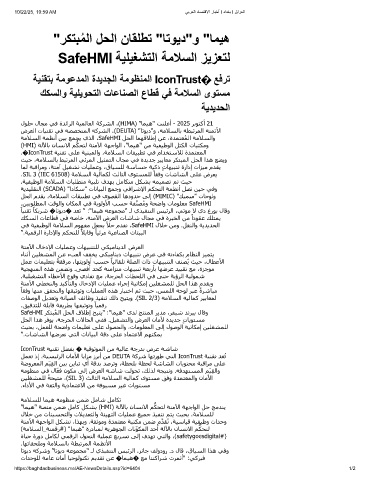SafeHMI ﺮﻜﺘﺒُﻤﻟا ﻞﺤﻟا قﻼطإ ﺢﯿﺘﻳ" :"ﺎﻤﯿھ" ىﺪﻟ ﺞﺘﻨﻤﻟا ﺮﻳﺪﻣ ،ﺮﻔﯿﺷ ﺪﻧﺮﯿﺑ لﺎﻗو
