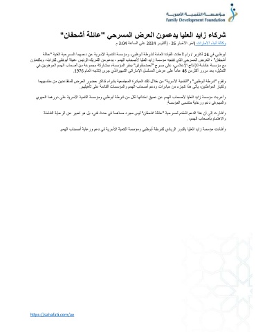 ةلئاع" ةينفلا ةيحرسملا امهمعد نع ةيرسلأا ةيمنتلا ةسسؤمو ،يبظوبأ ةطرشل ةماعلا ةدايقلا تنلعأ/ ماو / ربوتكأ 26 يف يبظوبأ