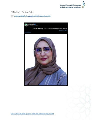 Publication: X – UAE News Arabic Link: عمتجملا يف ةيباجيلإا لئاسر نورشني ةيعامتجلاا ةيلوؤسملاب نوصتخم https://news.halalkhalij.com/united-arab-emirates/amp/114481