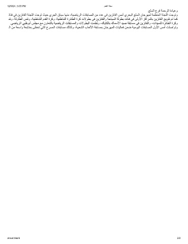 ﺠﻟا ﻦﻣ ﺔﻌﺳاو ﺔﻌﺑﺎﺘﻤﺑ ﻰﻈﺤﺗ ﻲﺘﻟا حﺮﺴﻤﻟا تﺎﻘﺑﺎﺴﻣ ﻚﻟﺬﻛو ،ﺔﯿﺒﻌﺸﻟا بﺎﻌﻟﻷا ﺔﻘﺑﺎﺴﻤﺑ نﺎﺟﺮﮭﻤﻟا تﺎﯿﻟﺎﻌﻓ ﻦﻤﺿ ﺔﯿﻣﻮﯿﻟا تﺎﻘﺑﺎﺴﻤﻟا لوﻷا ﺲﻣأ ﺖﻠﺻاﻮﺗو