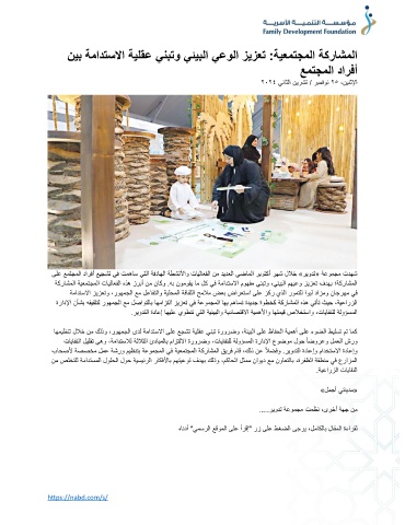 ةكراشملا ةيعمتجملا تايلاعفلا هذه زربأ نم ناكو .هب نوموقي ام لك يف ةمادتسلاا موهفم ينبتو ،يئيبلا مهيعو زيزعت فدهب ؛ةكراشملا