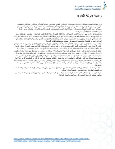 ةنمآ ةئيب ريفوتل ةيعامتجلاا »رادلا ةكرب« ةيدنأ ةسسؤملا تأشنأ ،راطلإا اذه يفو .نيميقملاو نينطاوملا رابكل ةميرك ةايح ةدوج نمضي
