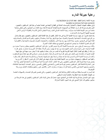 لماش ماظن قفو ،نيميقملاو نينطاوملا رابكل ةلماكلا ةياعرلا ميدقتل راطلإا اذه يف ةيرسلأا ةيمنتلا ةسسؤم دوهج نع ًاريرقت تعبات دقو