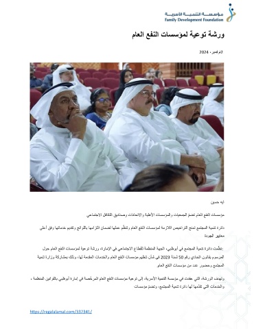 لوح ماعلا عفنلا تاسسؤمل ةيعوت ةشرو ،ةراملإا يف يعامتجلاا عاطقلل ةمظنملا ةهجلا ،يبظوبأ يف عمتجملا ةيمنت ةرئاد تمظن :
