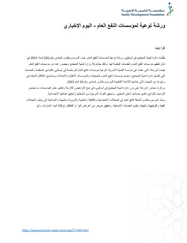 يف 2023 ةنسل ) 50 ( مقر يداحتا نوناقب موسرملا لوح ،ماعلا عفنلا تاسسؤمل ةيعوت ةشرو ،يبظوبأ يف عمتجملا ةيمنت ةرئاد تمظن