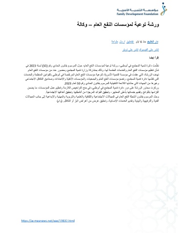 يف 2023 ةنسل ) 50 ( مقر يداحتا نوناقب موسرملا لوح ،ماعلا عفنلا تاسسؤمل ةيعوت ةشرو ،يبظوبأ يف عمتجملا ةيمنت ةرئاد تمظن