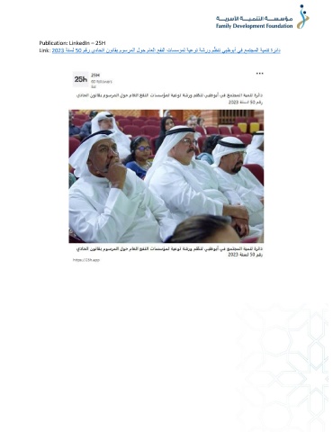 Publication: LinkedIn – 25H ّ Link: 2023 ةنسل 50 مقر يداحتا نوناقب موسرملا لوح ماعلا عفنلا تاسسؤمل ةيعوت ةشرو مظنت يبظوبأ يف عمتجملا ةيمنت ةرئاد
