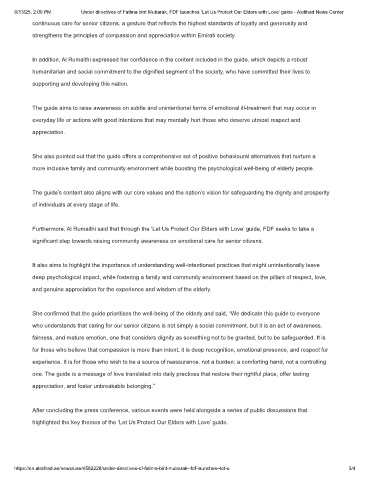 6/13/25, 2:00 PM Under directives of Fatima bint Mubarak, FDF launches ‘Let Us Protect Our Elders with Love’ guide - Aletihad News Center