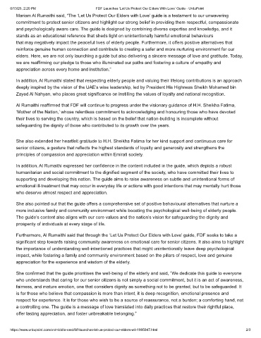 Furthermore, Al Rumaithi said that through the ‘Let Us Protect Our Elders with Love’ guide, FDF seeks to take a