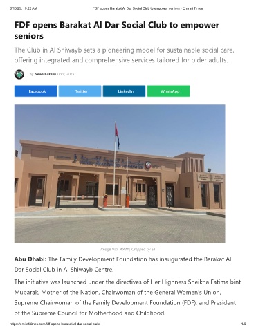 6/10/25, 10:22 AM FDF opens Barakat Al Dar Social Club to empower seniors - Emirati Times
