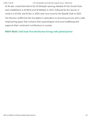 6/10/25, 10:22 AM FDF opens Barakat Al Dar Social Club to empower seniors - Emirati Times