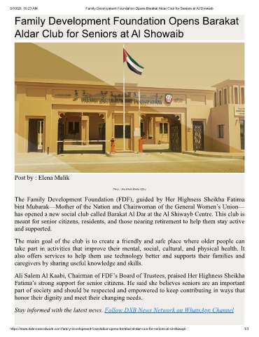 https://www.dxbnewsnetwork.com/family-development-foundation-opens-barakat-al-dar-club-for-seniors-at-al-shiwayb 1/3