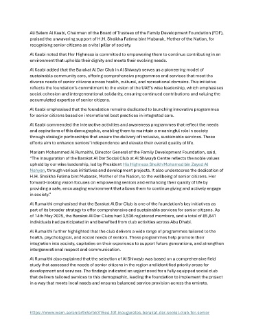 Al Kaabi added that the Barakat Al Dar Club in Al Shiwayb serves as a pioneering model of
