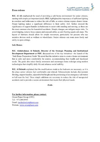 H.E. Al Ali emphasised the need of providing a safe home environment for senior citizens,