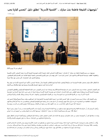 6/13/25, 2:40 PM بﺣﺑ ﺎﻧرﺎﺑﻛ ﻲﻣﺣﻧﻟ" لﯾﻟد ﻖﻠطﺗ "ﺔﯾرﺳﻷا ﺔﯾﻣﻧﺗﻟا" .. كرﺎﺑﻣ تﻧﺑ ﺔﻣطﺎﻓ ﺔﺧﯾﺷﻟا تﺎﮭﯾﺟوﺗﺑ" - Nas News UAE