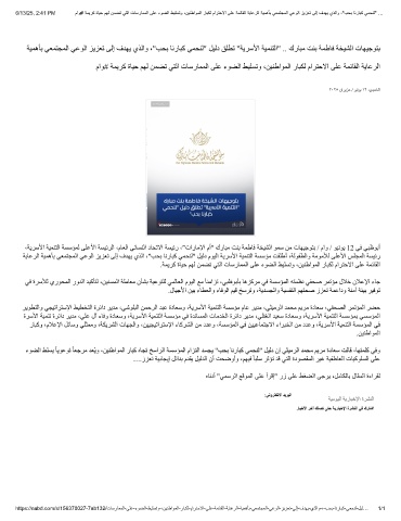 ﺔﯾﺎﻋﺮﻟا ﺔﯿﻤھﺄﺑ ﻲﻌﻤﺘﺠﻤﻟا ﻲﻋﻮﻟا ﺰﯾﺰﻌﺗ ﻰﻟإ فﺪﮭﯾ يﺬﻟا ،"ﺐﺤﺑ ﺎﻧرﺎﺒﻛ ﻲﻤﺤﻨﻟ" ﻞﯿﻟد مﻮﯿﻟا ﺔﯾﺮﺳﻷا ﺔﯿﻤﻨﺘﻟا ﺔﺴﺳﺆﻣ ﺖﻘﻠطأ ،ﺔﻟﻮﻔﻄﻟاو ﺔﻣﻮﻣﻸﻟ ﻰﻠﻋﻷا ﺲﻠﺠﻤﻟا ﺔﺴﯿﺋر