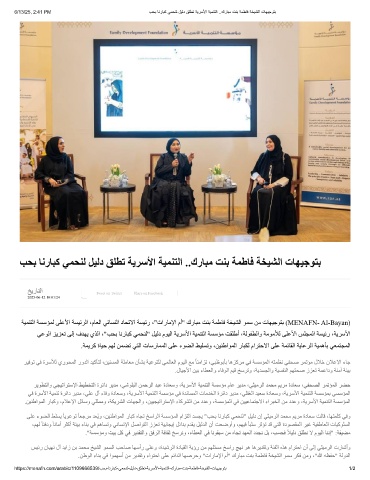 ﻲﻋﻮﻟا ﺰﯾﺰﻌﺗ ﻰﻟإ فﺪﮭﯾ يﺬﻟا ،"ﺐﺤﺑ ﺎﻧرﺎﺒﻛ ﻲﻤﺤﻨﻟ" ﻞﯿﻟد مﻮﯿﻟا ﺔﯾﺮﺳﻷا ﺔﯿﻤﻨﺘﻟا ﺔﺴﺳﺆﻣ ﺖﻘﻠطأ ،ﺔﻟﻮﻔﻄﻟاو ﺔﻣﻮﻣﻸﻟ ﻰﻠﻋﻷا ﺲﻠﺠﻤﻟا ﺔﺴﯿﺋر ،ﺔﯾﺮﺳﻷا