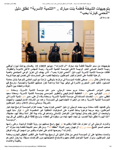 ﻲﺒظﻮﺑأ (زﻮﯿﻧ ﭧﻨﺋاﻮﭘ نﺎﺘﺴﮐﺎﭘ 12 ء2025 ﻮﯿﻧﻮﯾ) ،"تارﺎﻣﻹا مأ" كرﺎﺒﻣ ﺖﻨﺑ ﺔﻤطﺎﻓ ﺔﺨﯿﺸﻟا ﻮﻤﺳ ﻦﻣ تﺎﮭﯿﺟﻮﺘﺑ