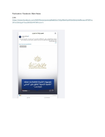 Publication: Facebook- Wam News Link: https://www.facebook.com/WAMNews/posts/pfbid0JUcT2QyRBsKKyrWGd26xfp3wRkcaumP18Fnu DFcK2St3qaHTew2WVDJMR7KFvUm1l